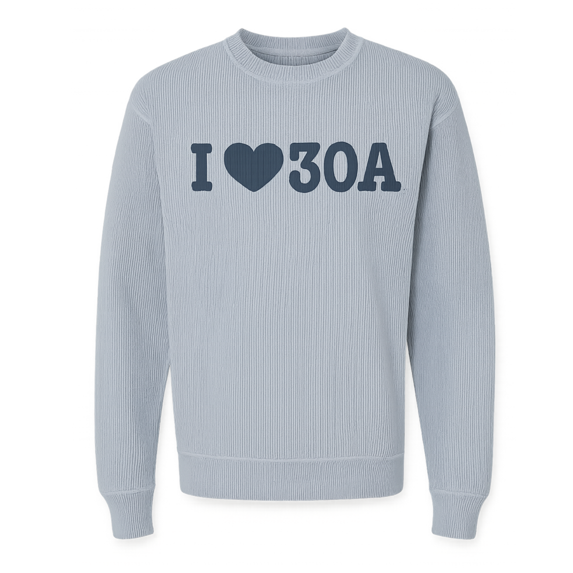 Show your love for the coast in our soft, light blue ‘I ♥ 30A’ crewneck. Cozy, casual, and perfect for breezy beach days or cool nights.